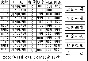 按歷史數(shù)據(jù)界面鍵進入圖4界面。該界面紀(jì)錄試驗次數(shù)、日期、試驗杯數(shù)、試驗序號、閃點值等。