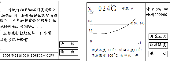 (7)自動測試過程中,選擇開蓋鍵,此時儀器自動開蓋點火一次(自動提前20℃點火),可隨時檢查在開蓋前閃火值,可檢查所設(shè)溫度是否適中。
