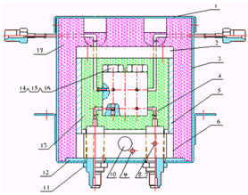 10 加熱絲 11 螺母 12 石棉墊圈 13 玻璃珠 14 螺母 15 墊圈 16 鎢絲 17 保溫棉